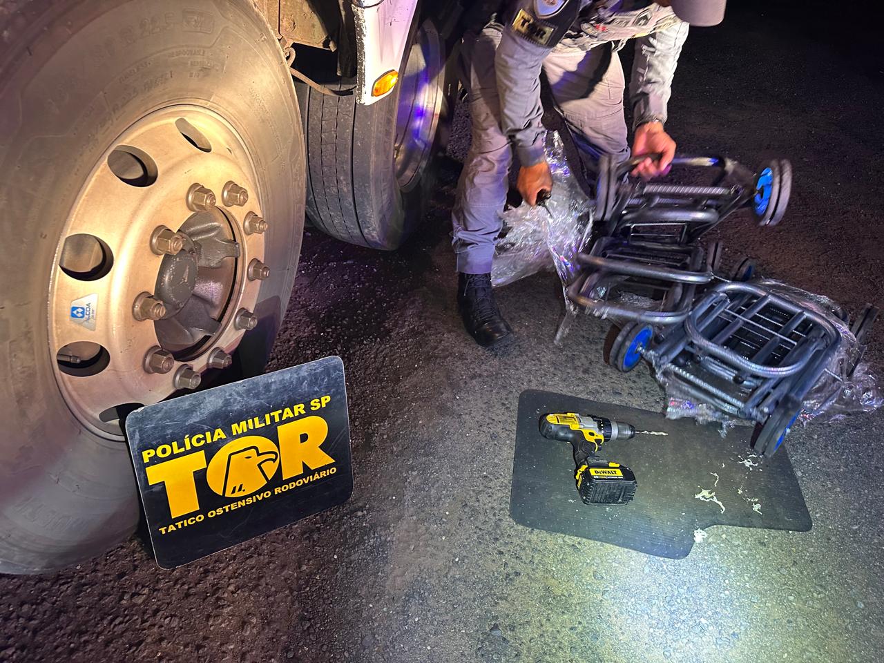 “Durante a vistoria no compartimento de bagagens, quatro carrinhos maleiro utilizados para transporte de carga chamaram a atenção das equipes policiais em razão do seu peso desproporcional. Após vistoriarem as estruturas dos canos metálicos dos referidos carrinhos, com auxílio de furadeira, foram localizados ocultos em seus interiores 82 invólucros de pasta base de cocaína, que totalizaram 6,170 quilos”, explica o policiamento rodoviário.