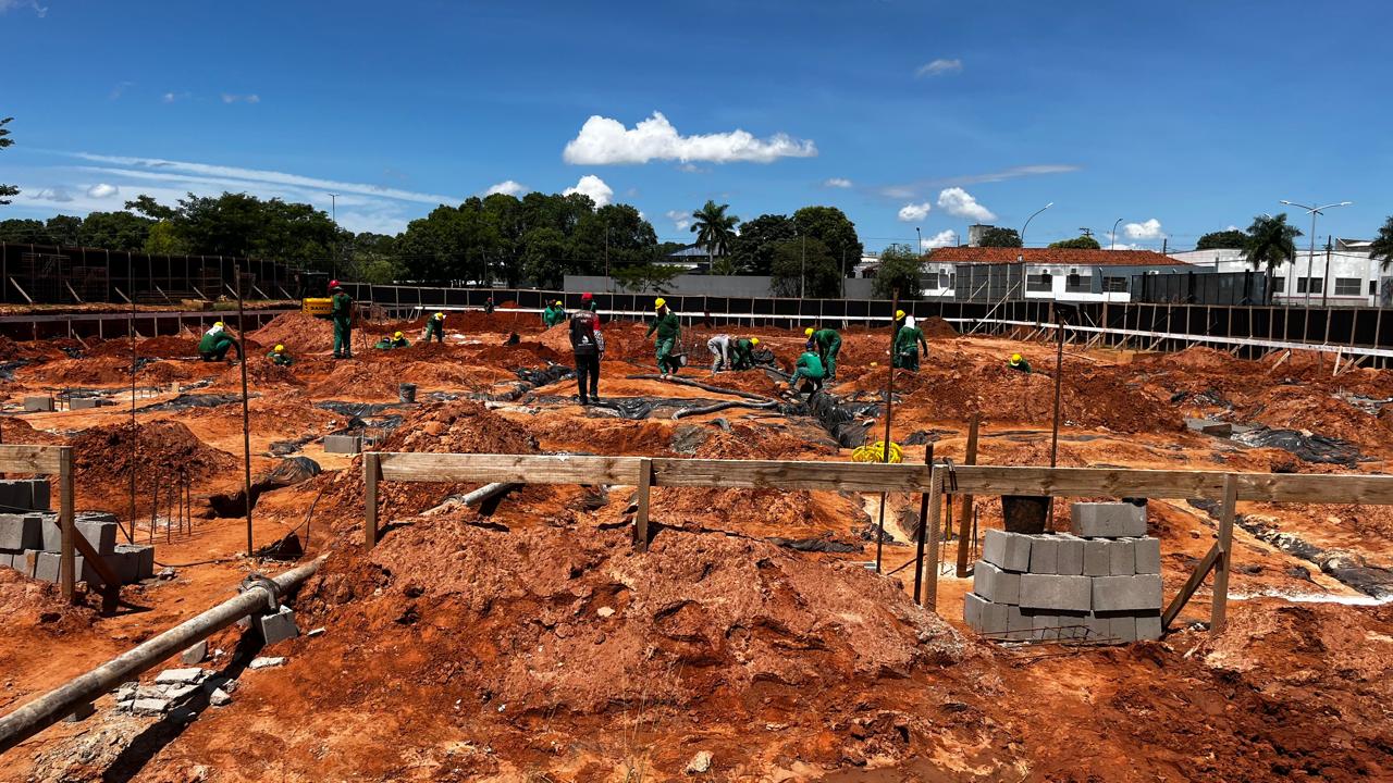 Durante a visita, fiz algumas imagens em vídeo registrando o trabalho de concretagem do alicerce, uma etapa importante dentro de uma obra de grande porte, que exige intenso trabalho e movimenta diversos setores da cidade.