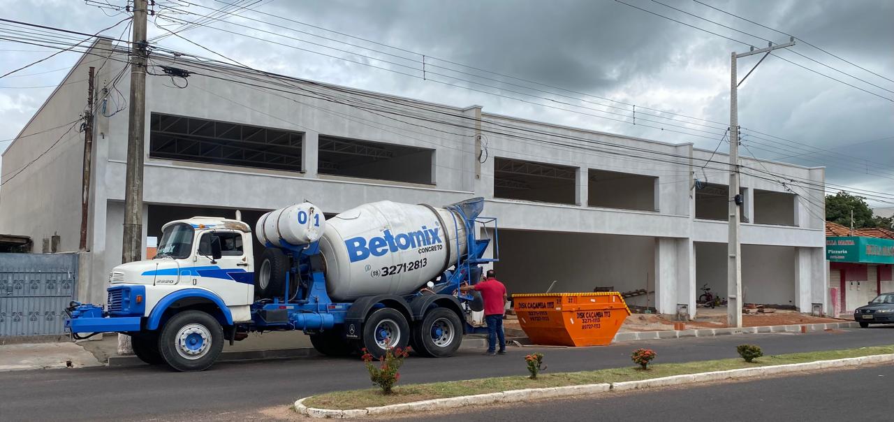 Nesta sexta-feira, a Betomix, empresa de concreto usinado de Presidente Venceslau, realizava a entrega de concreto para a calçada do primeiro espaço.