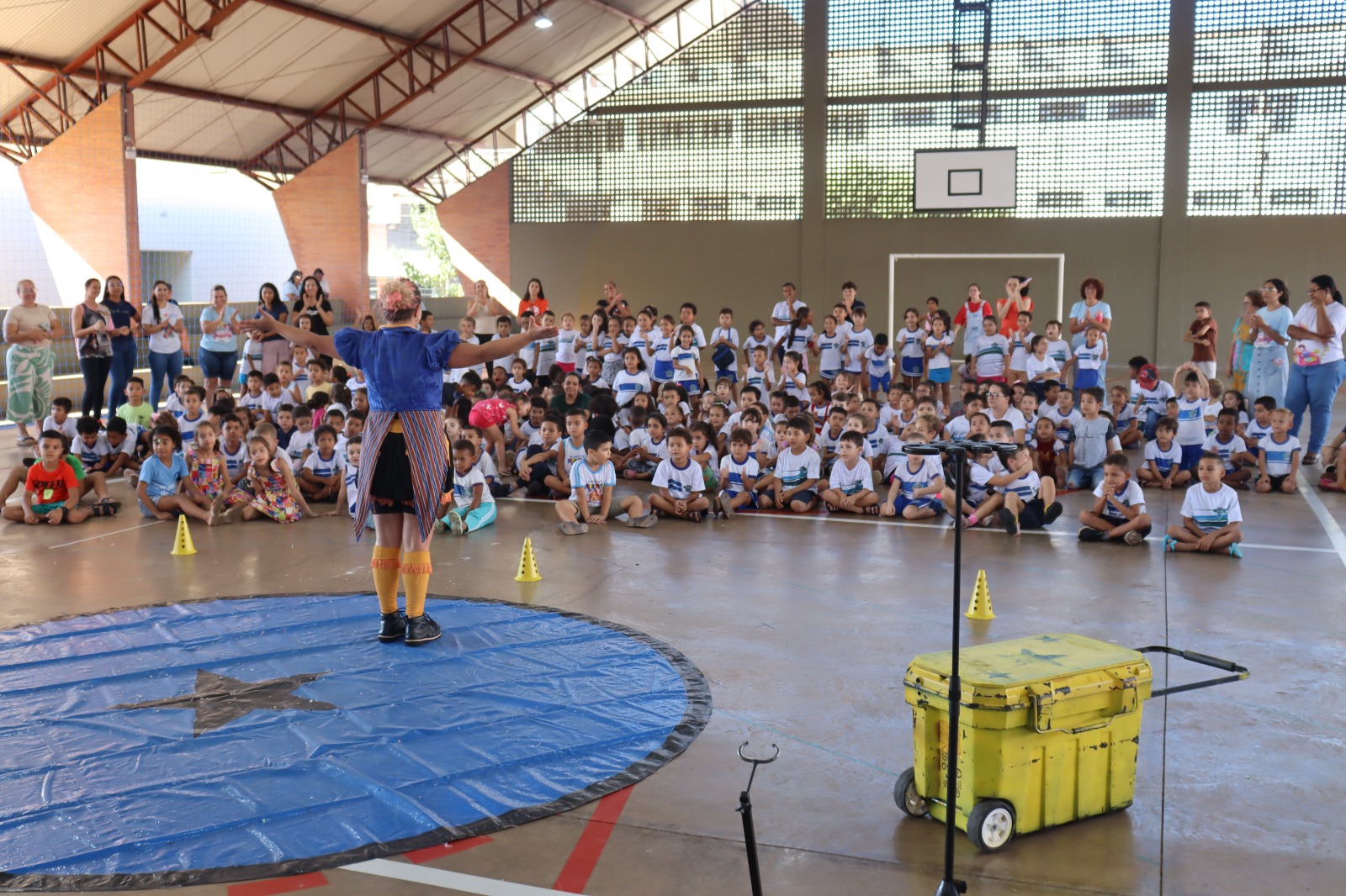 A quadra coberta da EMEFEI Doce Saber foi transformada em picadeiro, nesta quinta-feira, (09), para a apresentação do Circo Vanilla Show da Cia. Terrível. Os estudantes, pais e comunidade escolar prestigiaram o espetáculo gratuitamente, promovido pelo Circuito Cult SP, realizado pela Secretaria da Cultura, Economia e Indústria Criativas do Estado de São Paulo, em parceria com a Associação Paulista dos Amigos da Arte (APAA) e apoio da Prefeitura da Estância Turística de Presidente Epitácio, por meio da Secretaria de Turismo e Cultura.