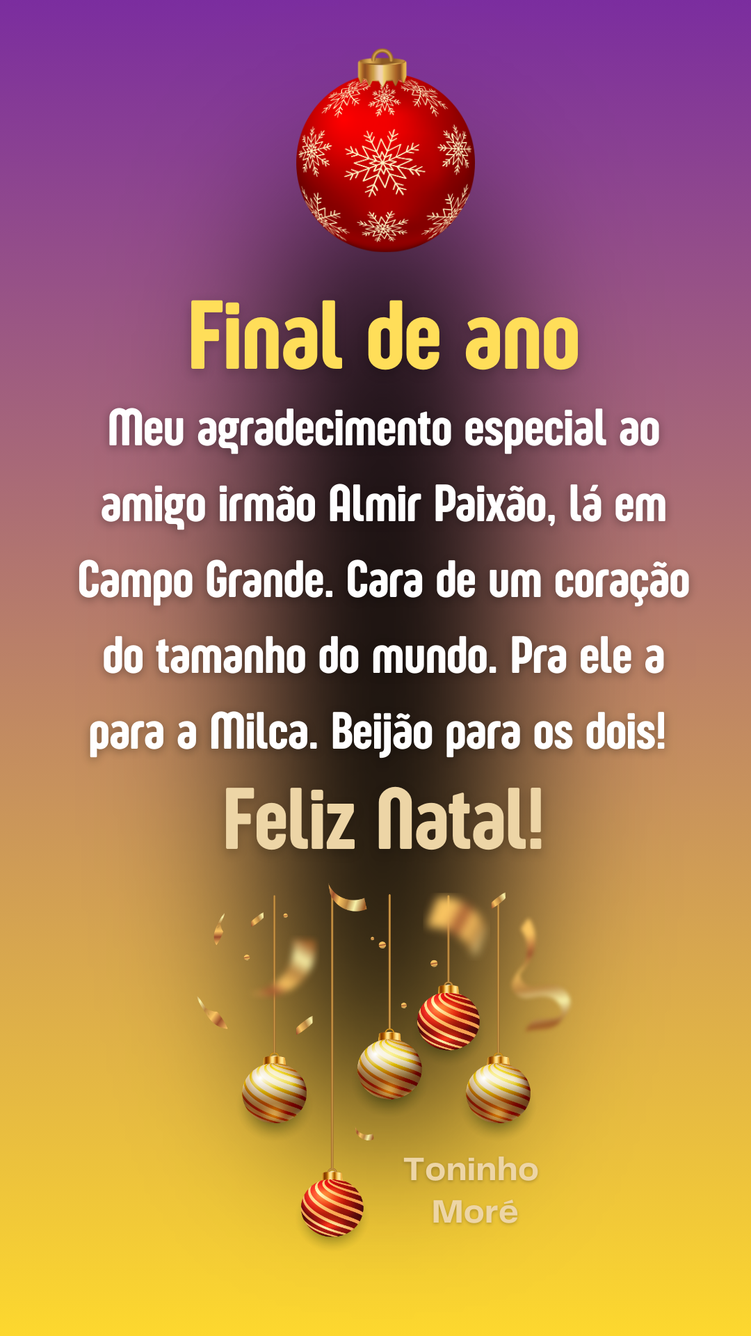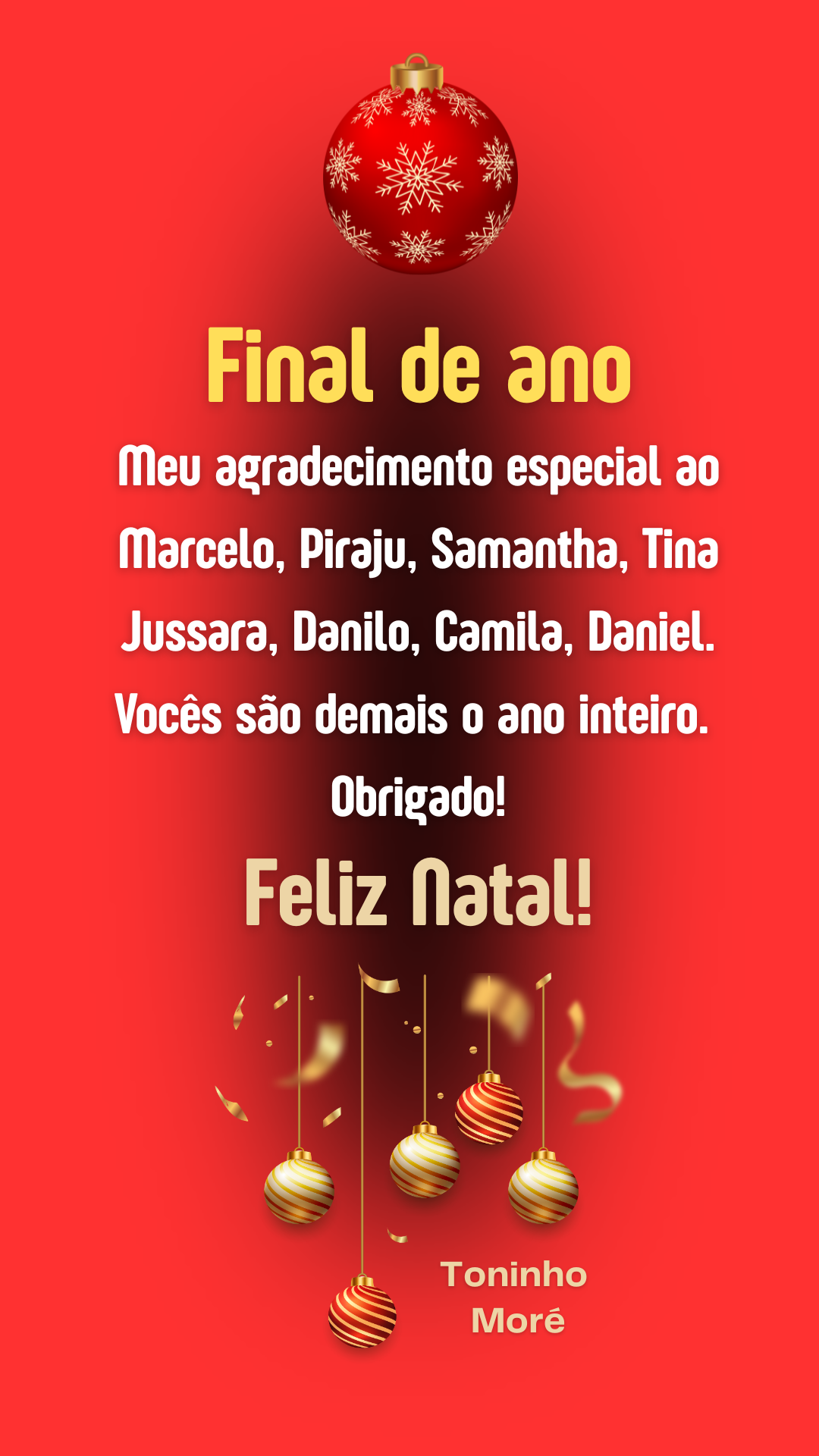 No mais, Feliz Natal a todos vocês.