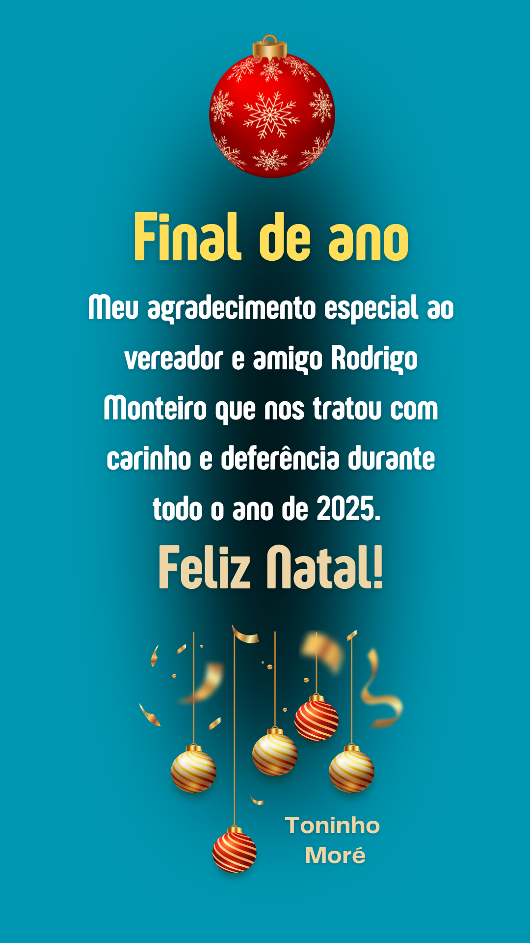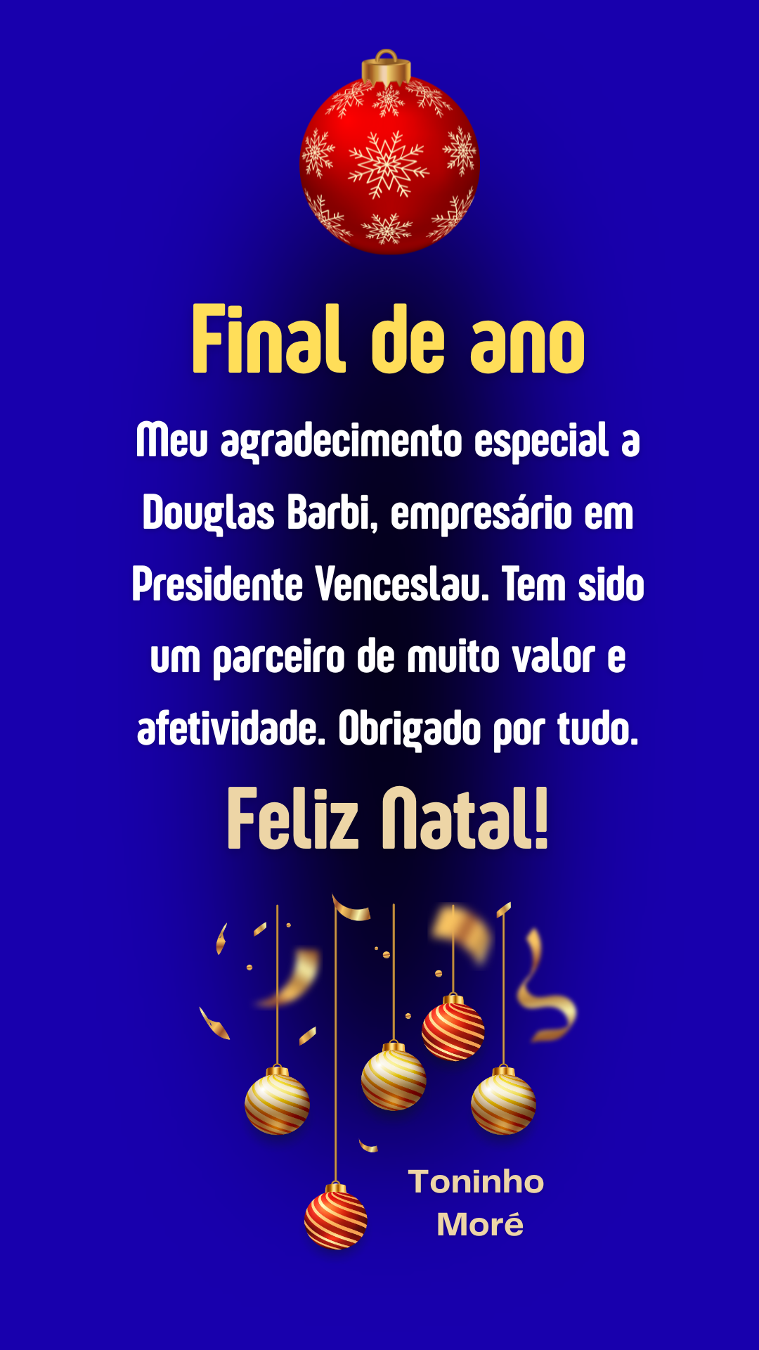 Aproveito este dia maravilhoso que antecede o Natal para deixar um abraço especial a estes dois empresários: Cristiane Santos de Souza e Uhender José Rodrigues.