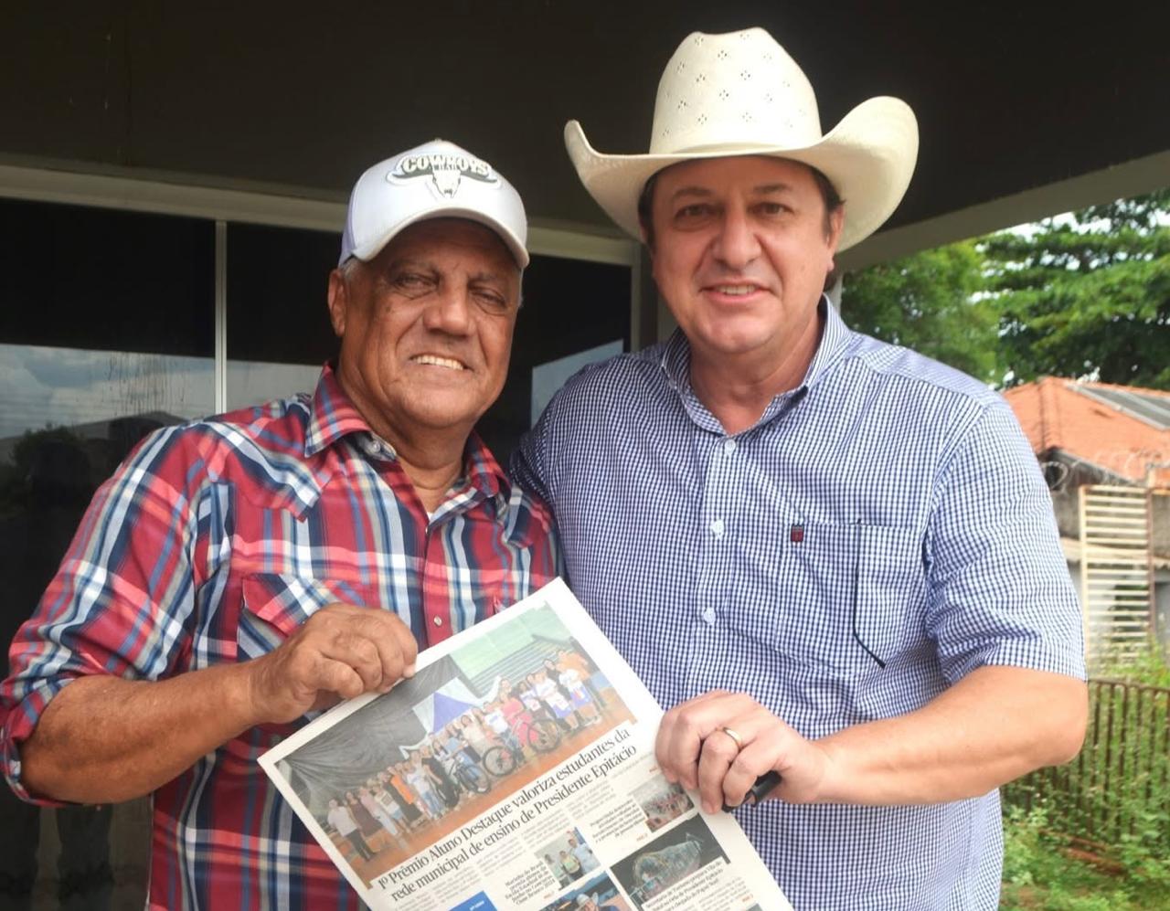 José Luiz Rui Dias, o Zé Cowboy, recebeu nesta semana, em sua casa em Presidente Epitácio, a visita de um dos maiores nomes do rodeio brasileiro. Almir Cambra, considerado o locutor de rodeio mais preparado, técnico e premiado do Brasil. Esteve na cidade a convite do amigo pessoal Zé Cowboy.