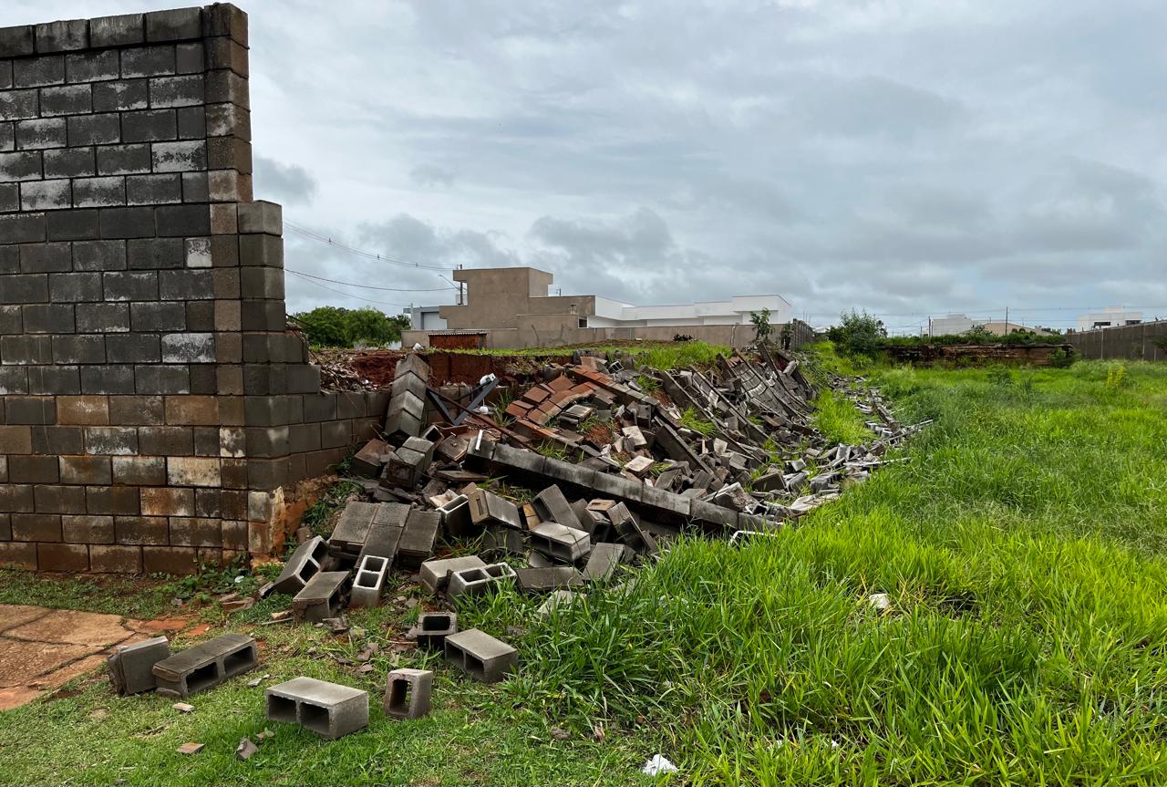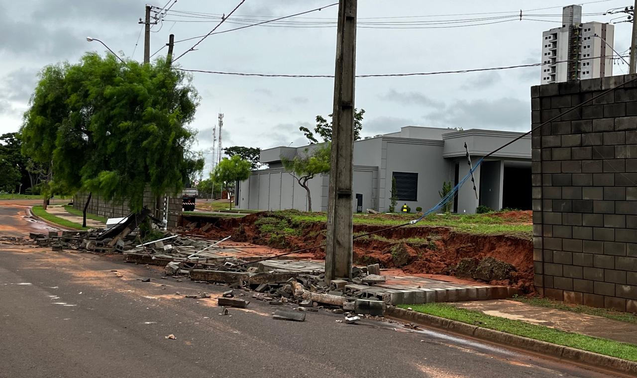 Partes do muro de um condomínio caem com as chuvas desta madrugada de terça-feira em Presidente Venceslau