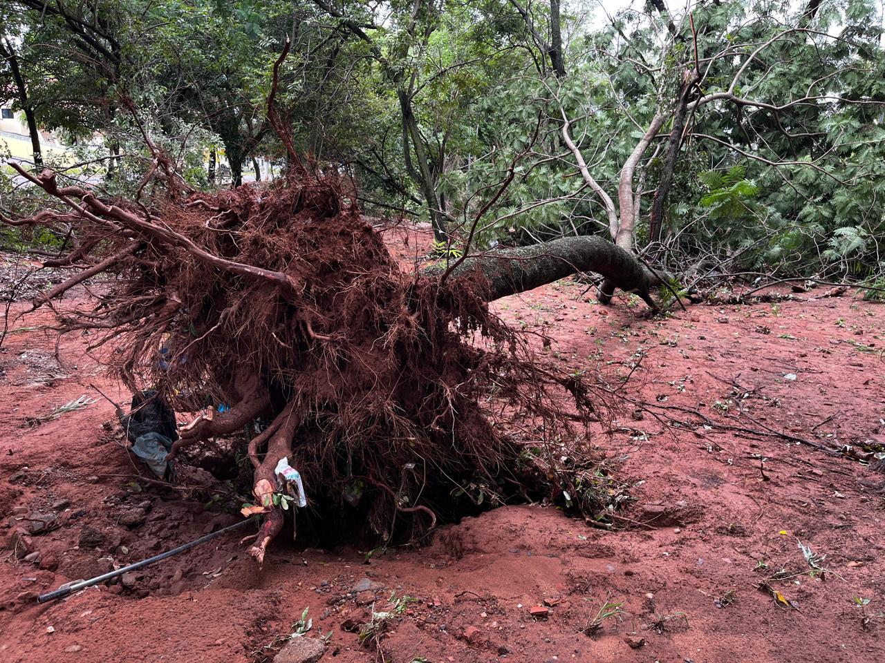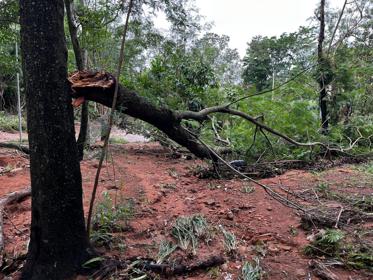 Árvores arrancadas no bosque pela forte enxurrada das chuvas de ontem em Presidente Venceslau