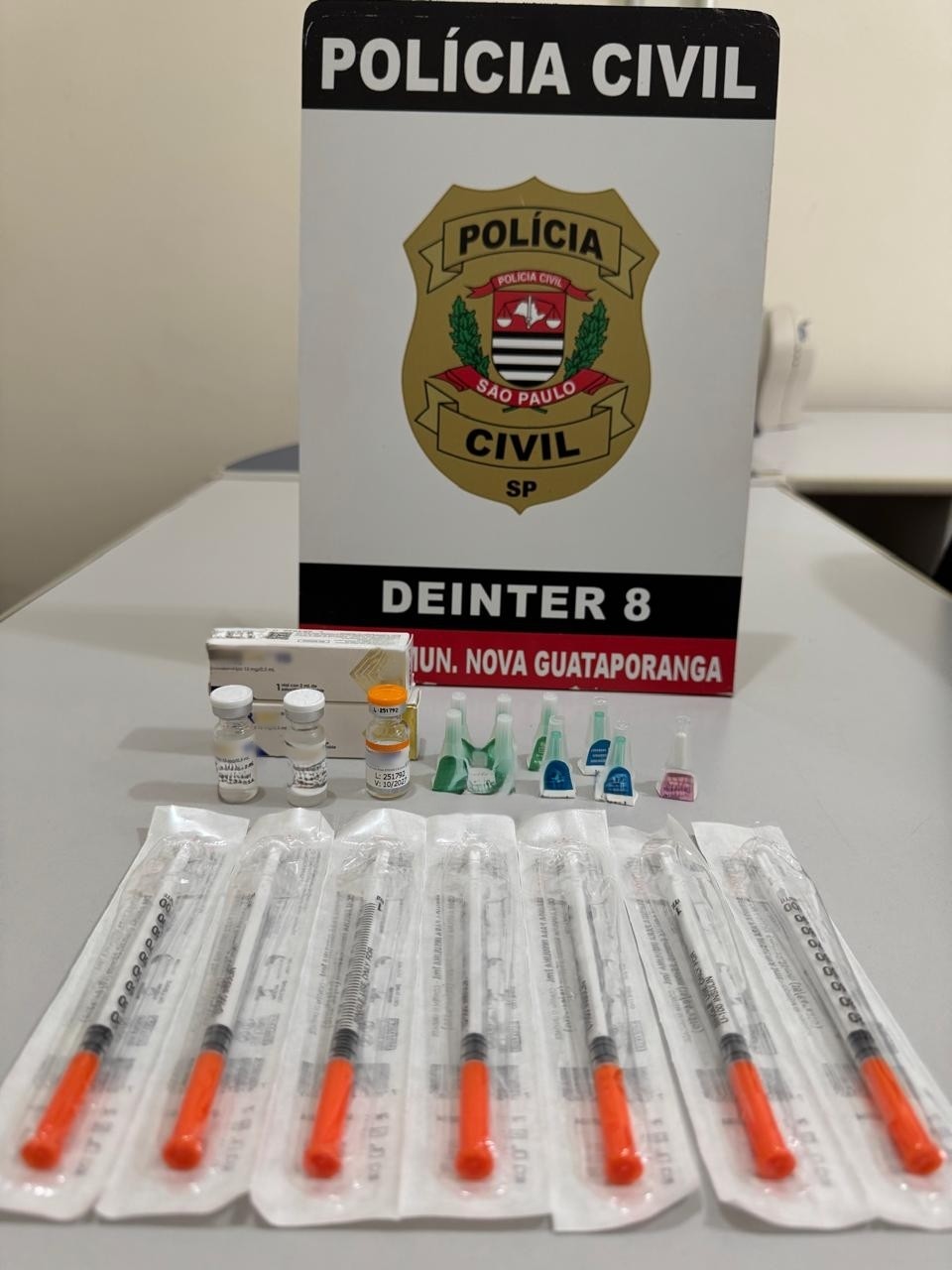 A Polícia Civil do Estado de São Paulo (PCSP), por intermédio da Delegacia de Polícia de Nova Guataporanga, com apoio operacional de agentes da Delegacia de Polícia de Paulicéia, deflagrou, nesta quarta-feira (4), nova ação de combate à comercialização irregular de medicamentos, resultando na apreensão de substâncias injetáveis utilizadas para emagrecimento, no município de Paulicéia.
